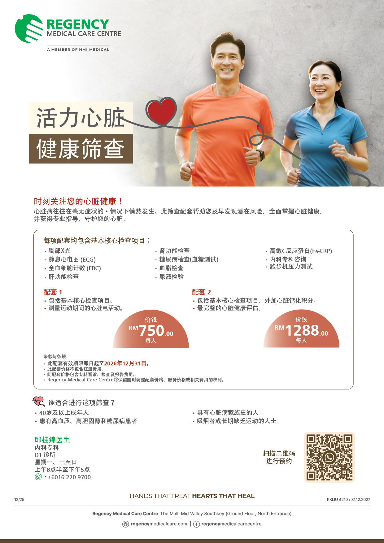 - Regency Medical Care Centre reserves the right to revise the package price and/or inclusions at any time.